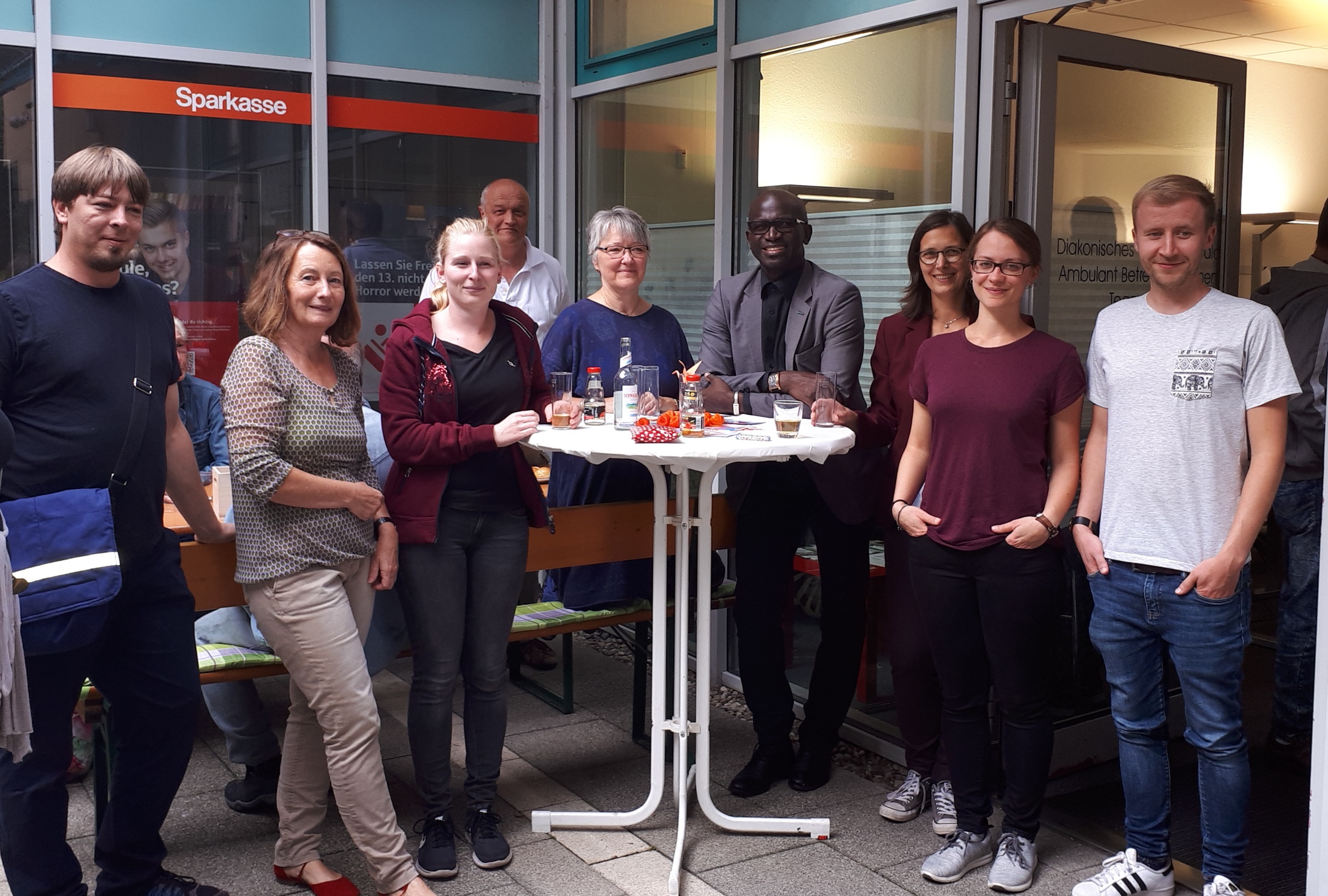 Die Menschen sollen in ihrem sozialen Umfeld gestärkt und stabilisiert werden. Bereichsleiterin Heike Eutemüller schätzt am neuen Standort Höchst besonders die kurzen Wege zu den Klienten. Gerade der barrierefreie Zugang zu den Räumlichkeiten der Außenstelle für Menschen mit eingeschränkter Gehfähigkeit ist ihr wichtig. „Zudem sind wir super mit öffentlichen Verkehrsmitteln und einem sehr kurzen Fußweg für Klientinnen und Klienten sowie für Fachkräfte aus dem Netzwerk erreichbar.“ Dass das Team gut vernetzt ist, zeigte sich an der Zusammensetzung der Gäste bei der Veranstaltung. Es gab einen regen Austausch mit Vertreterinnen und Vertretern von Behörden, gesetzlichen Betreuerinnen und Betreuern, Mitarbeitenden von anderen sozialen Diensten und natürlich mit Kolleginnen und Kollegen des Diakonischen Werks Odenwald.