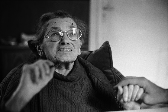 Das Bild zeigt eine ältere Frau mit Brille